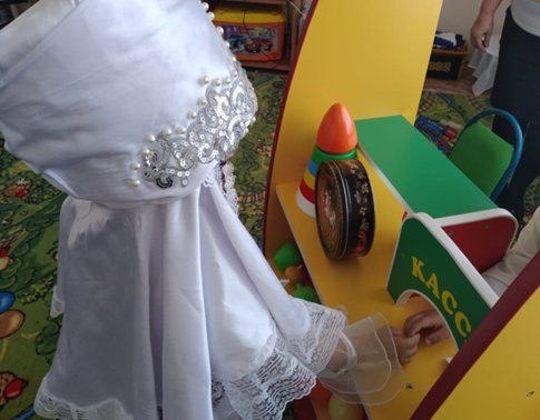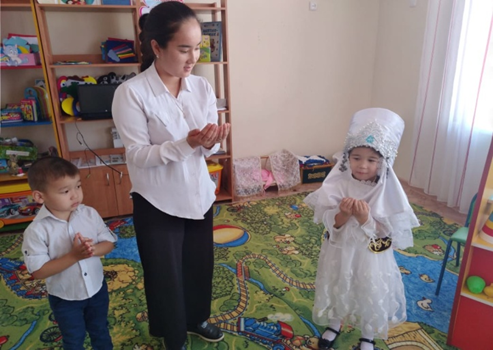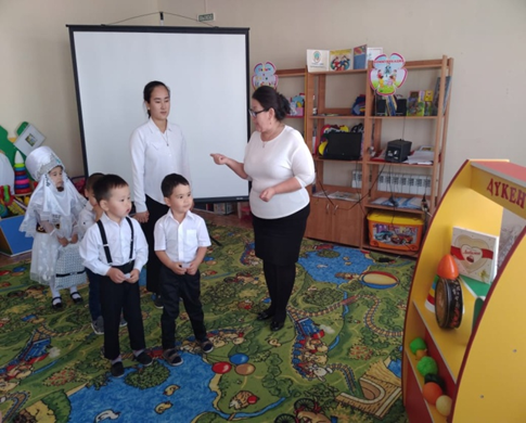 Мақсаты: Балаларға ұлттық қадір – қасиеттер, имандылық үлкенді қадірлеу, үлкенге ізет, кішіге құрмет көрсету керектігін түсіндіру. Балаларға еңбекті