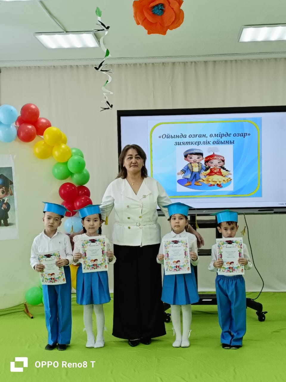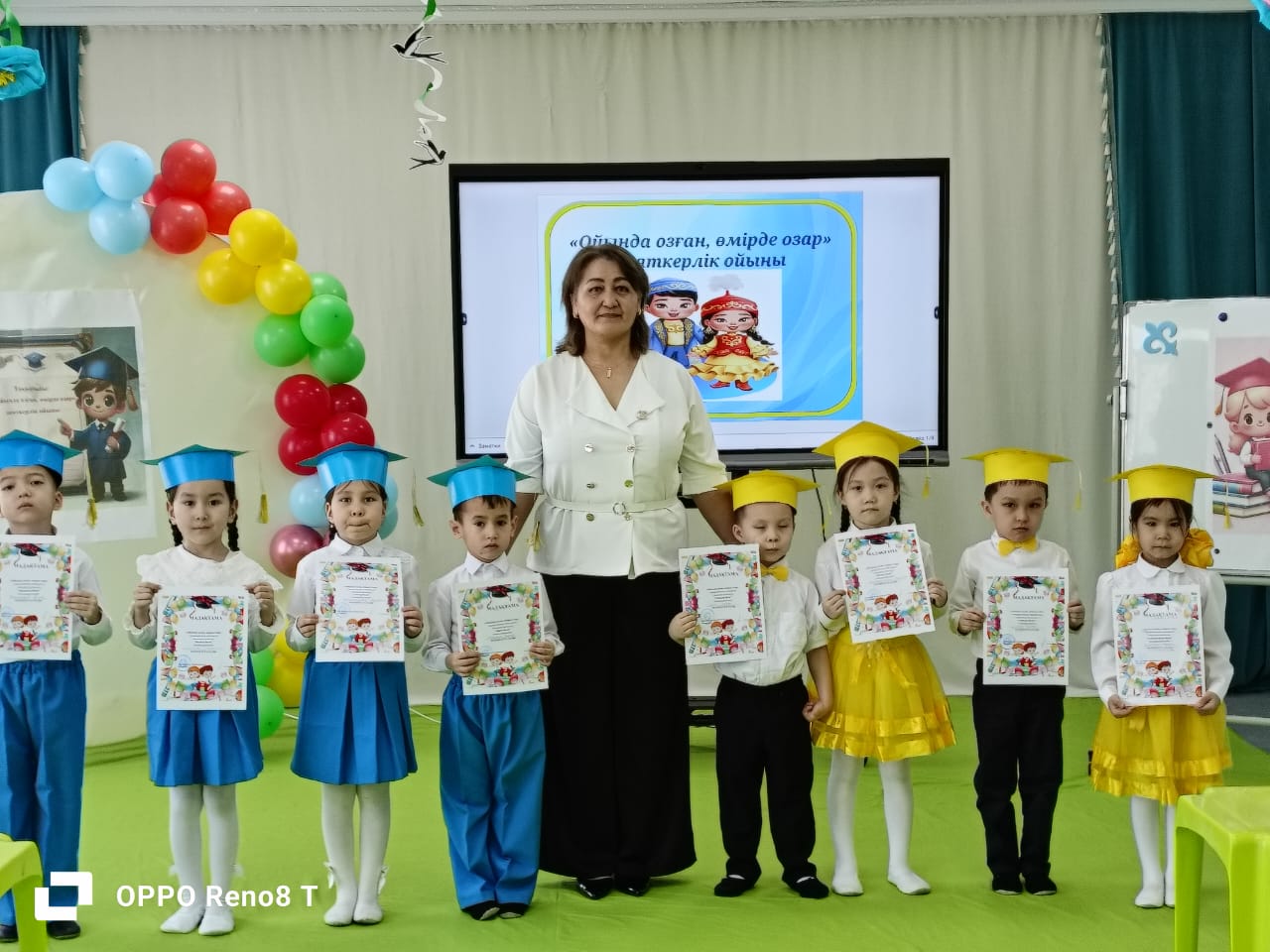 Жүргізуші: Қайырлы таң құрметті қонақтар! Бүгінгі «Ойында озған, өмірде озар» зияткерлік ойынына қош келдіңіздер! «Білімді ұрпақ – ел тірегі» демекші, мектепалды даярлық тобының сайыскерлерін қарсы алайық. Ортаға «Ақжұпар» мектепалды тобының тәрбиеленушілерін шақырайық. Сағызғалиева Гаухар, Қайрат Айбиби, Ақаш Сардар «Қызғалдақ» мектепалды тобының тәрбиеленушілерін шақырайық. Болысбаева Муслима, Бектемірова Ақтоты, Кенжетаев Арсен