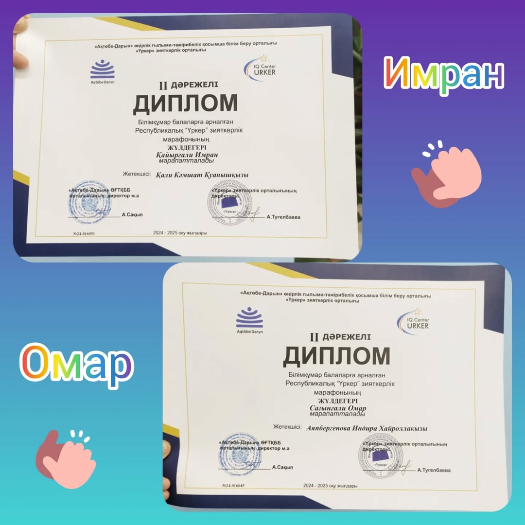 "Ақжұпар" мектепалды тобының тәрбиеленушілері білімқұмар балаларға арналған Республикалық "Үркер" зияткерлік марафонына қатысып, жүлделі орындарға ие болды.