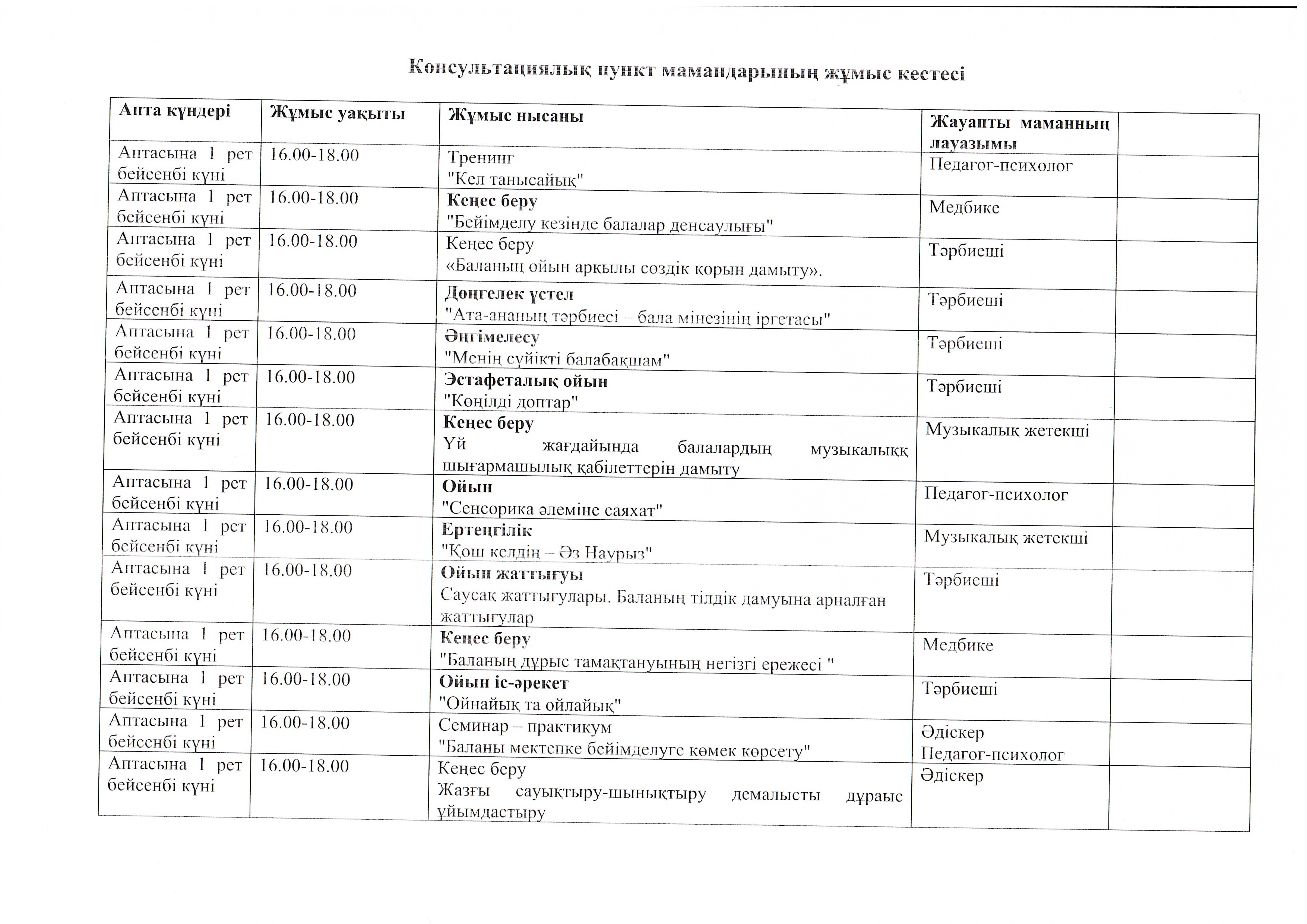 Жұмыс кестесі